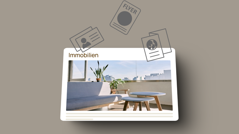 Erstellen Sie mühelos Broschüren, Visitenkarten und Flyer, um Ihre Immobilien zu präsentieren!